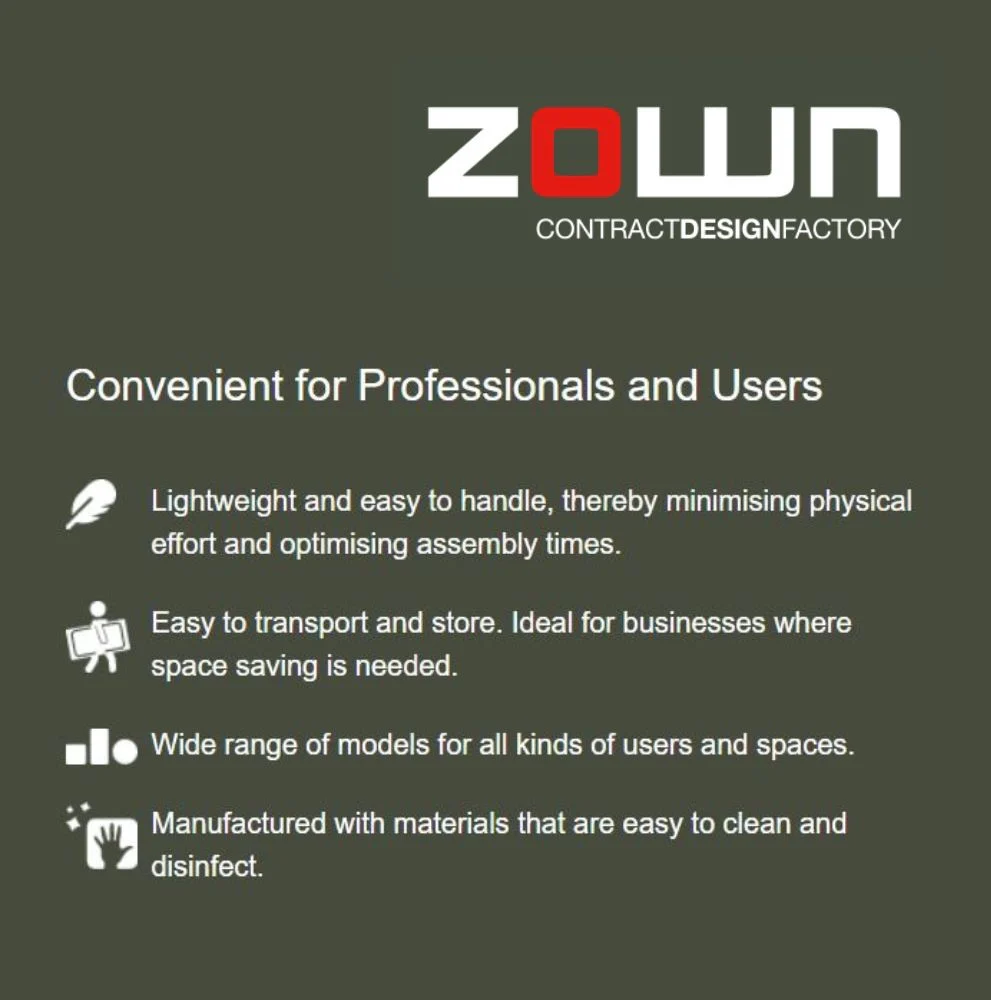 - Height adjusters on each leg for levelling.